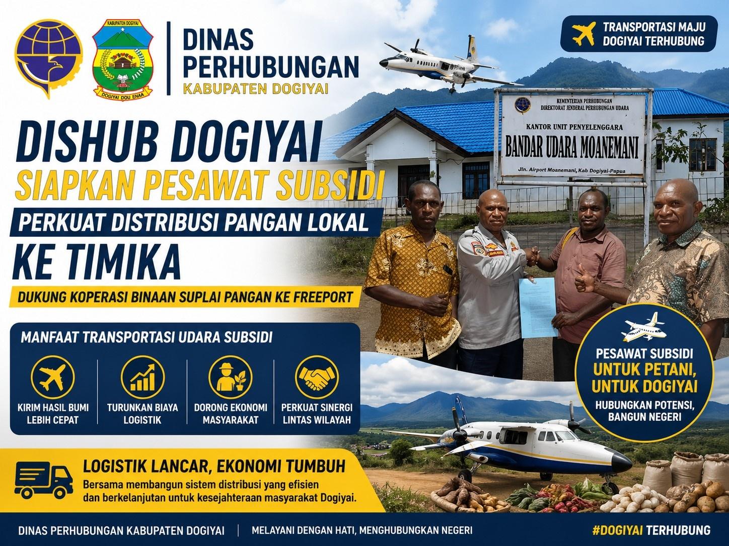 Dogiyai, 28 April 2026 – Dinas Perhubungan Kabupaten Dogiyai terus memperkuat perannya dalam mendukung kelancaran distribusi pangan melalui penyediaan transportasi udara bersubsidi sebagai bagian dari …